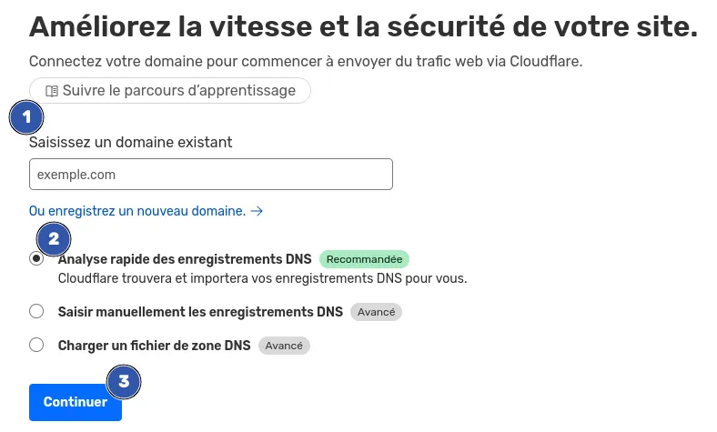 - Cloudflare scannera vos enregistrements DNS existants