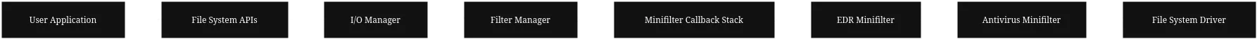 Les callbacks minifilter du système de fichiers fournissent aux EDR une visibilité sur les opérations de fichiers, ce qui est essentiel pour détecter les ransomwares (par ex.), l’exfiltration de données et les modifications de fichiers malveillantes.