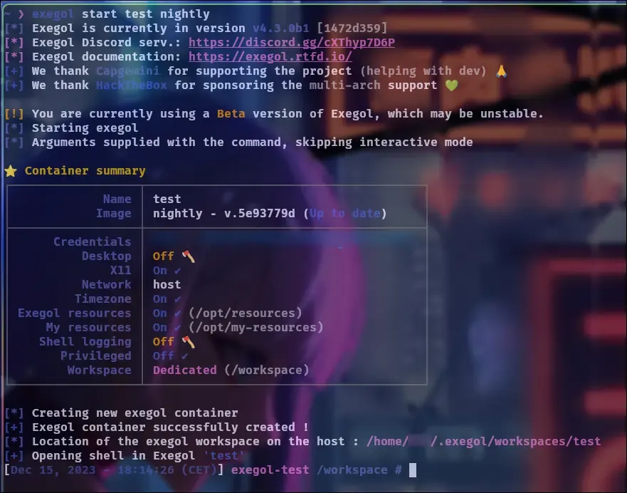 exegol start test nightly
