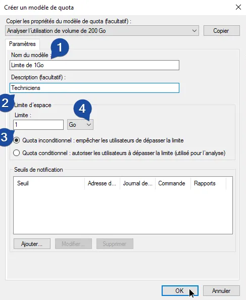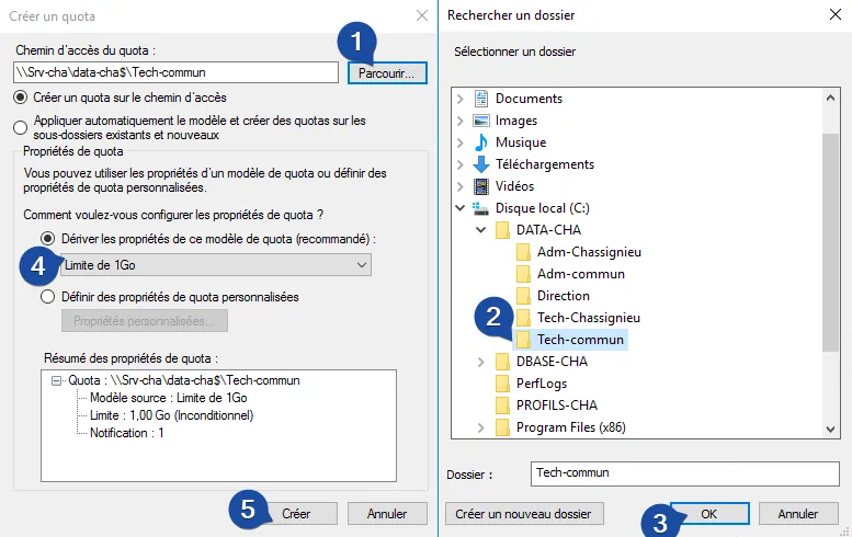 We will apply “quotas” to folder shares on the Chassignieu server as an example.