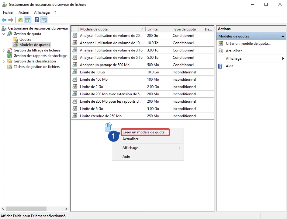 Nous allons appliquer des “quotas” aux partages de dossiers sur le serveur Chassignieu en exemple.