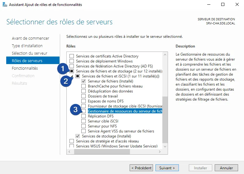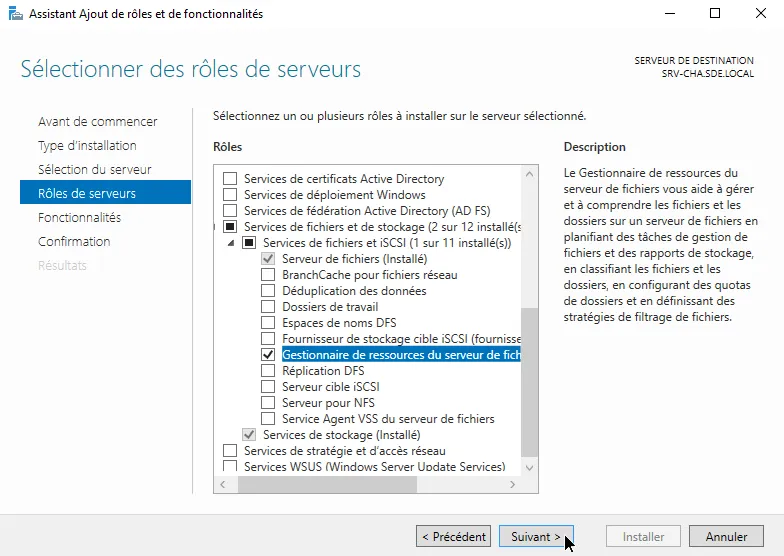 Ajout du rôle “Gestionnaire de ressources du serveur de fichiers”